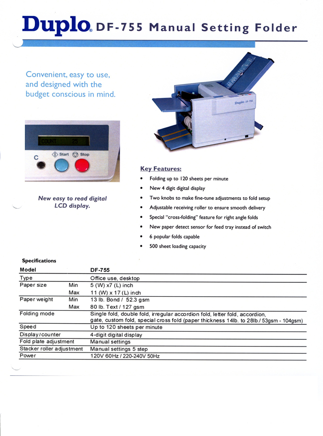 Both air and friction feed table top folders are available with discounts off the list pricing from the manufacturers.